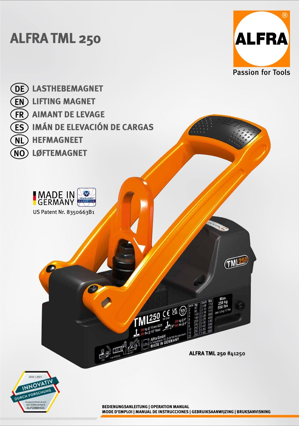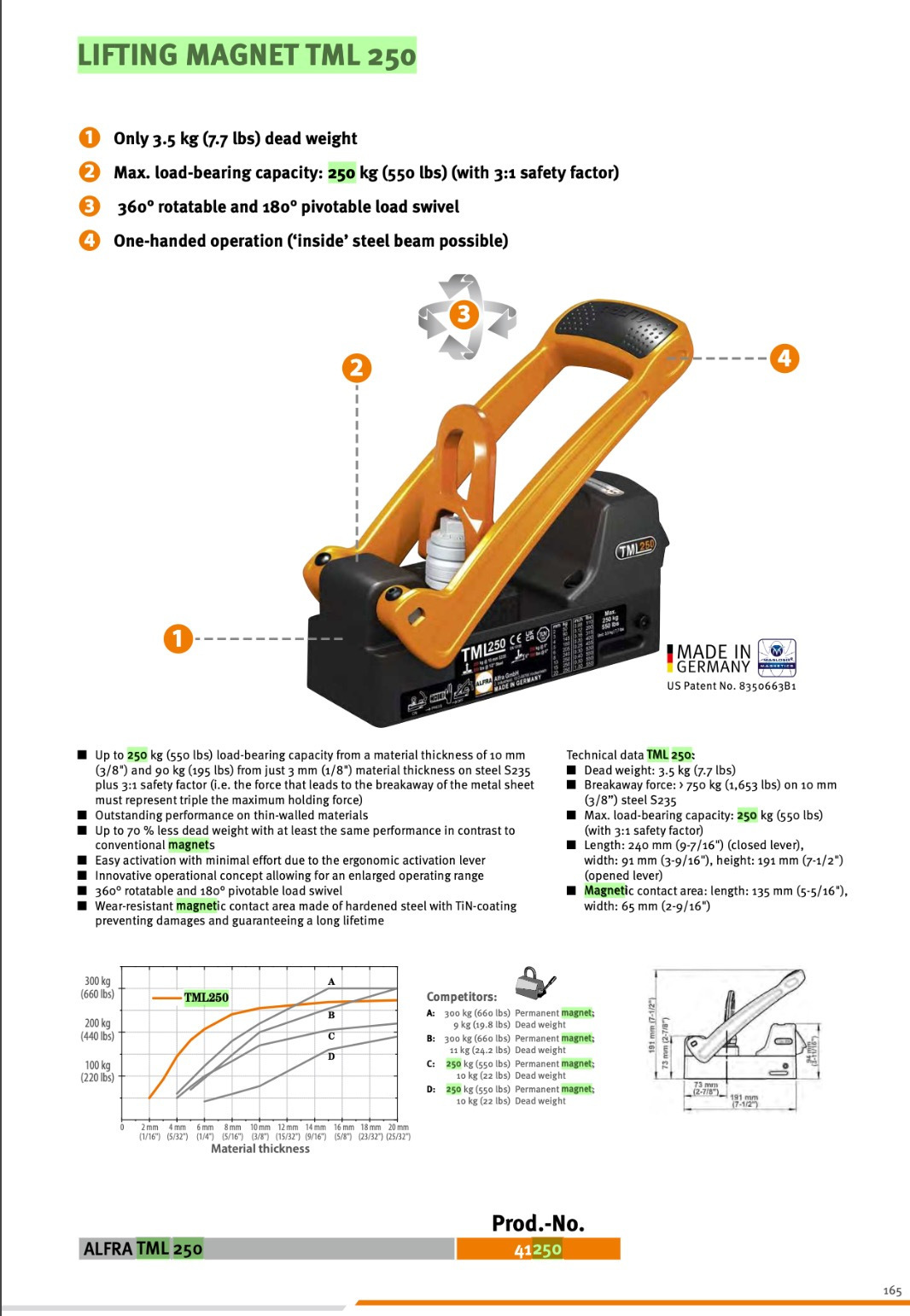 Alfra 起重磁鐵 TML 400R 技術數據: