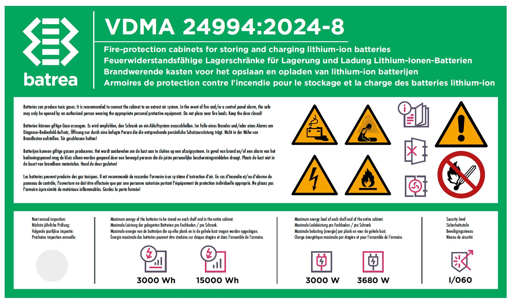 BATREA 鋰電池儲存櫃符合VDMA24994:2024-8標準的4大面向安全設計