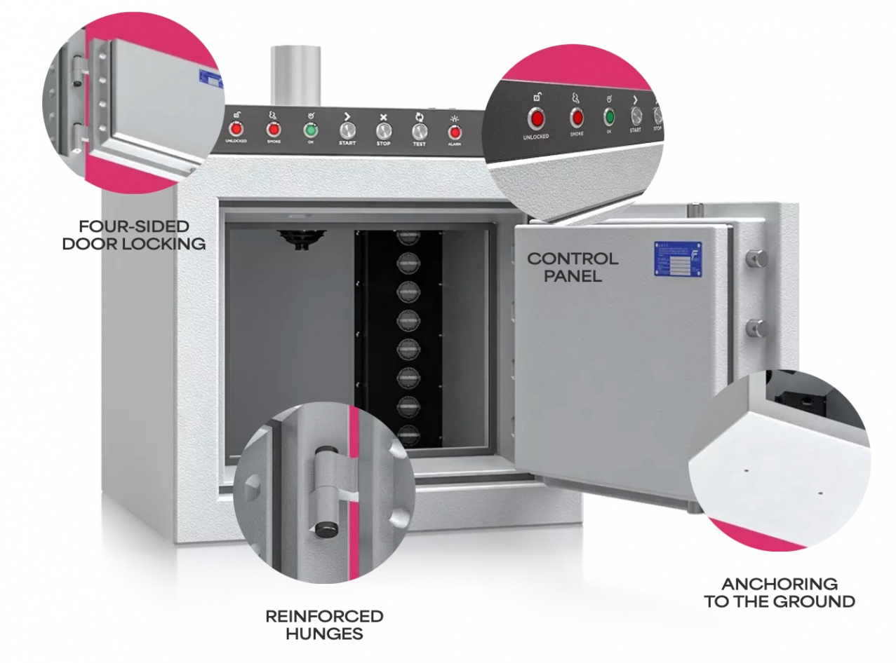 ✔️ 將整個櫃子實際暴露於火焰中30 / 60 / 90 分鐘耐火 (視廠家申請與通過的級別而定)