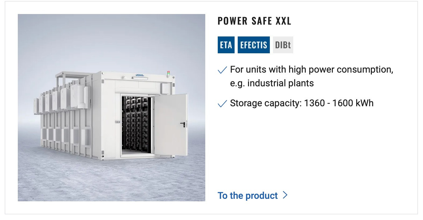 Denios 走入式(walk-in) 鋰電池儲能貨櫃 (太陽能/風力發電)