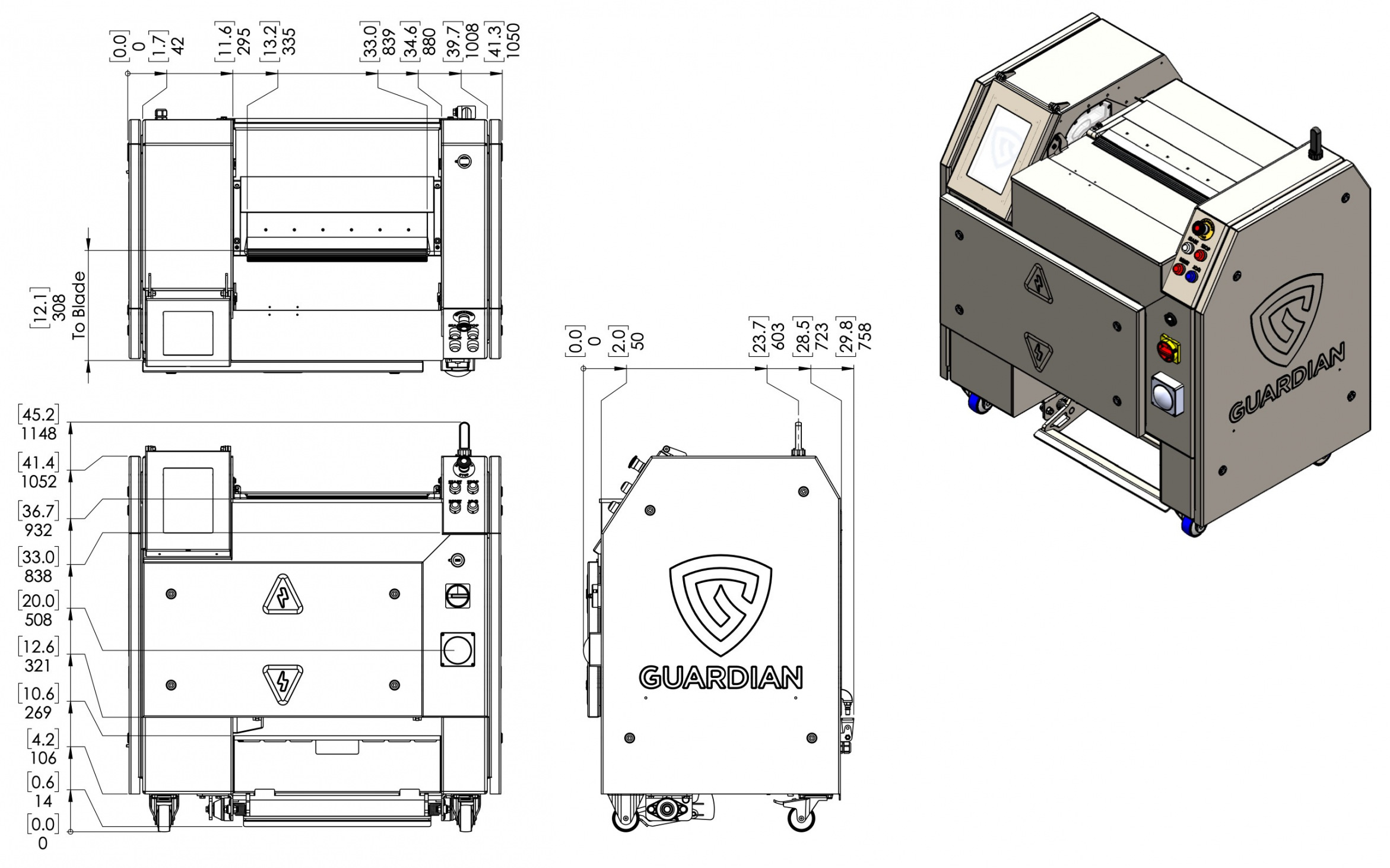 🛡 Guardian Skinner 全球最安全的肉品去皮機 產品尺吋圖 :