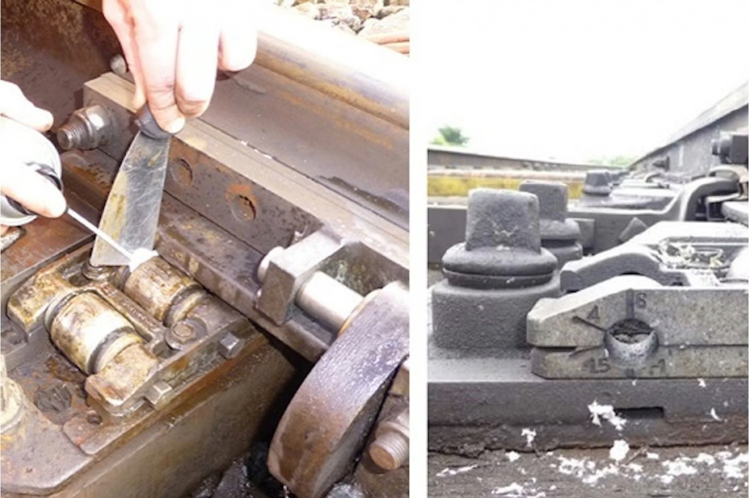 傳統的轉轍器尖軌潤滑方式,例如塗抹「三點(傳統)潤滑脂」,往往成效不佳且效率低落。潤滑脂容易脫落,無法完整覆蓋尖軌與鋼軌的整個接觸面,且長時間累積後會掩蓋缺陷與裂紋。此外,潤滑脂還可能向尖軌背面移動並逐漸硬化,進而妨礙轉轍器尖軌正確鎖定到位。