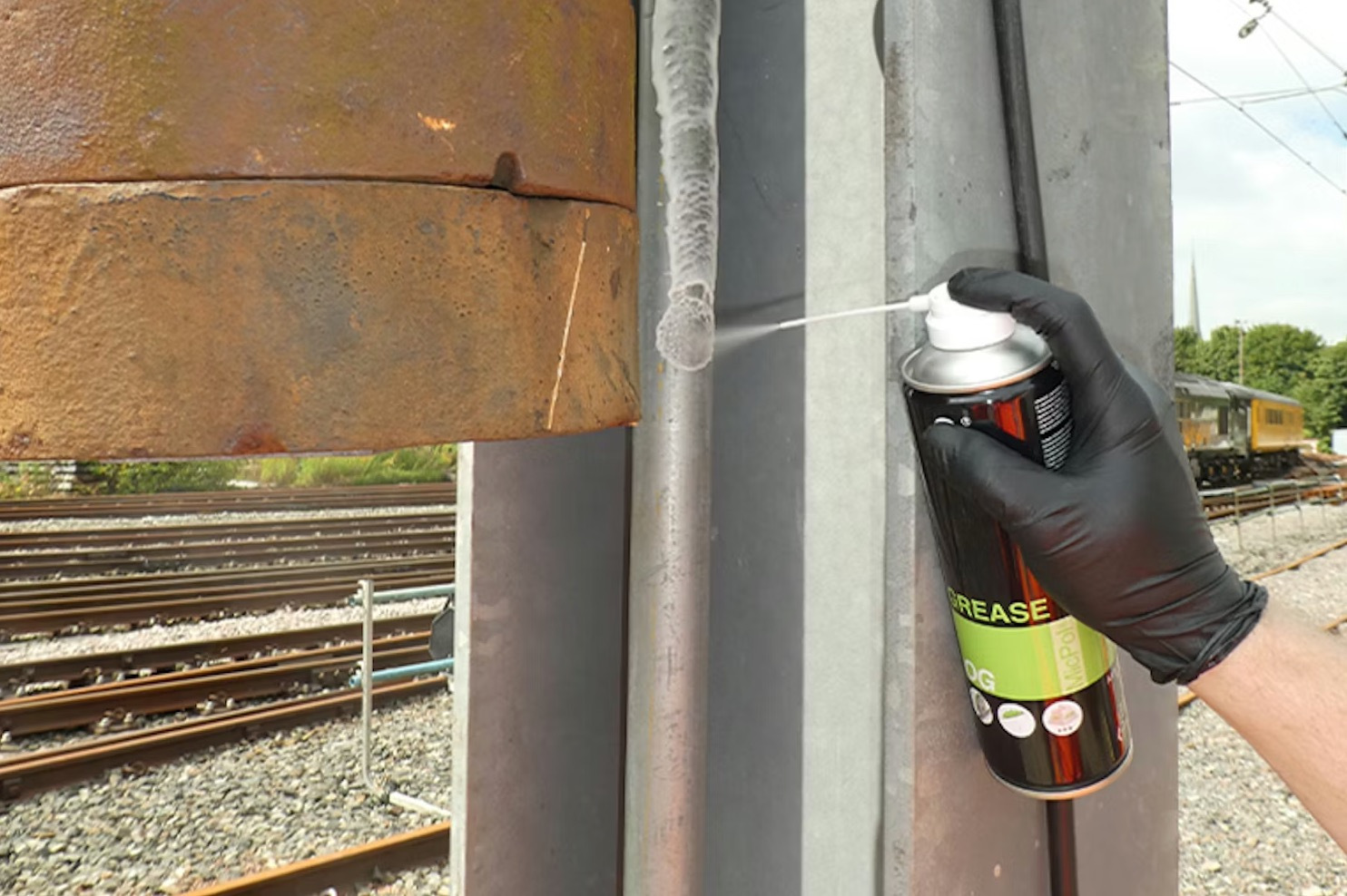 更理想的解決方案是使用 Interflon Grease OG 潤滑脂。該產品可在鋼軌表面形成一層耐磨的透明保護塗層,並可透過噴霧罐方式,沿著轉轍器尖軌全長輕鬆施作。Interflon Grease OG 不僅能有效保護鋼軌免於損傷、維持良好潤滑狀態,還能讓維護人員清楚進行目視檢查,及早發現任何缺陷或損壞。