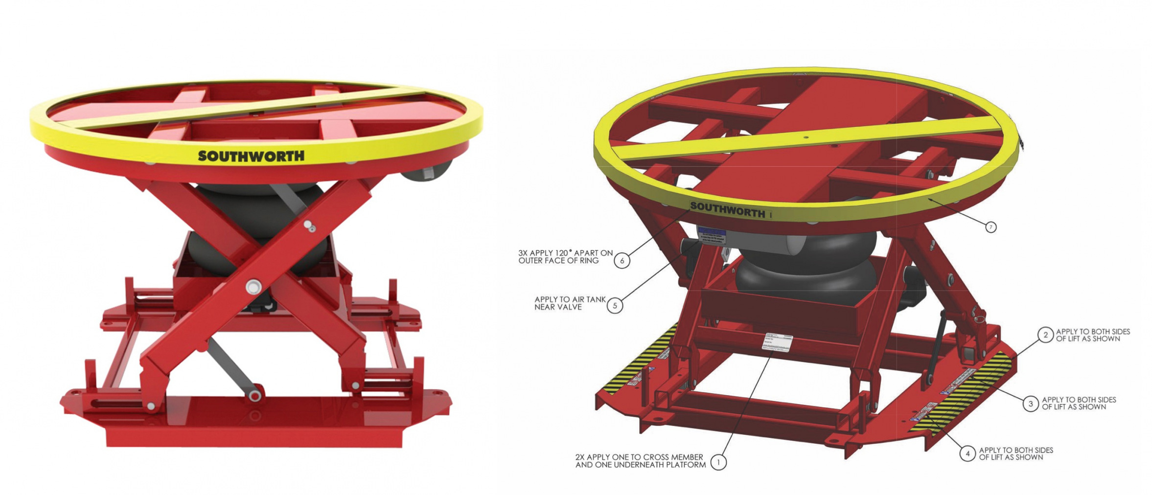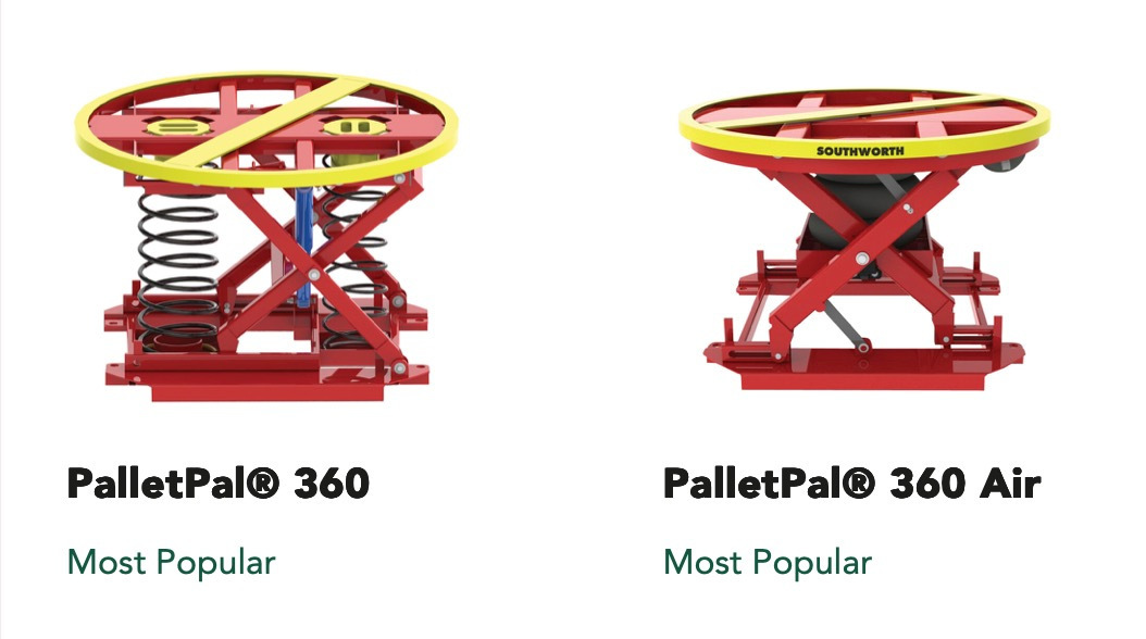 它所生產的產品涵蓋彈簧式與氣壓式自動升降棧板定位器(Level Loaders),可隨棧板負載自動調整作業高度,有效降低人員彎腰、搬抬的身體負擔,打造符合人體工學的工作環境。搭配旋轉平台、移動式定位器等多元選配,Southworth 的棧板搬運設備可靈活因應不同作業流程與場域需求,讓裝卸作業更快速、更安全、更有效率。
