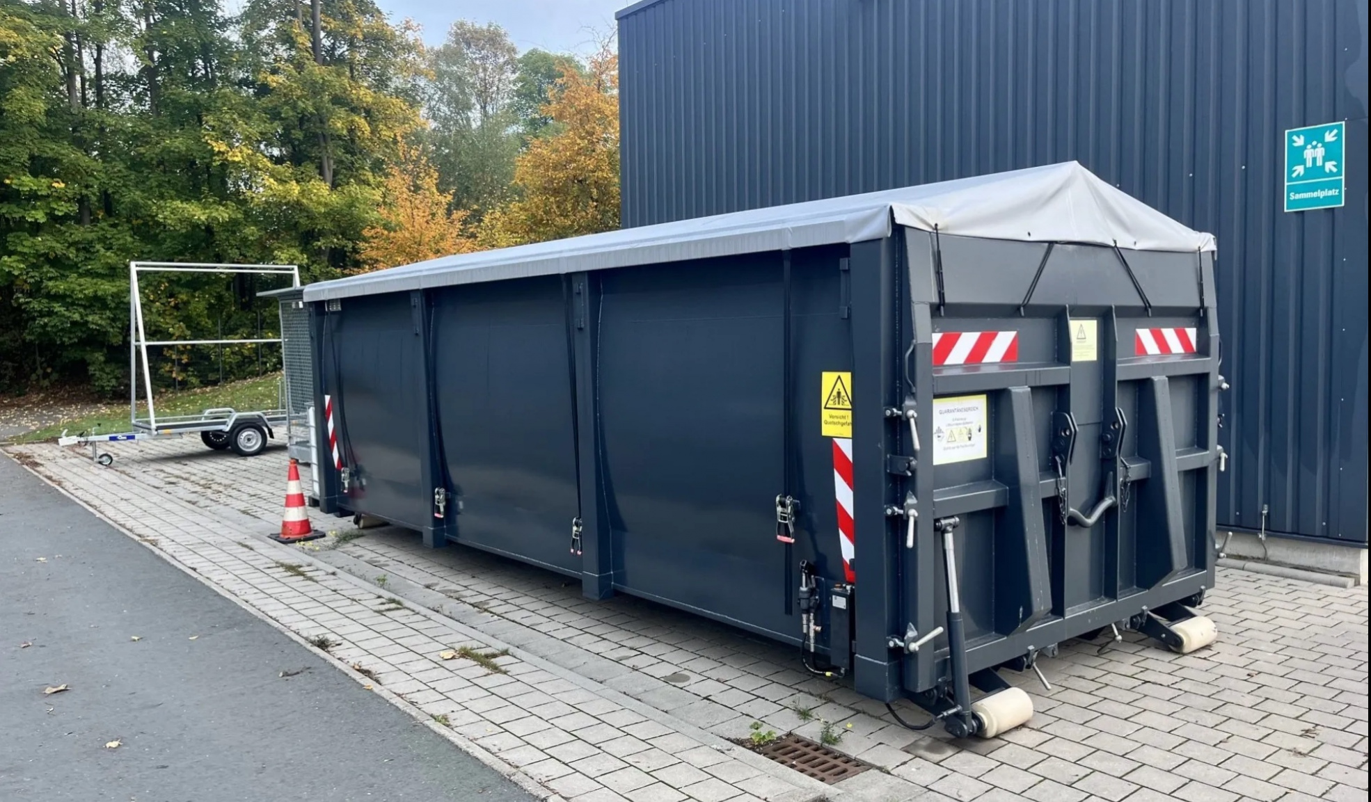 ☑️ 防火滾動篷布頂蓋,支持例如起重機裝載作業