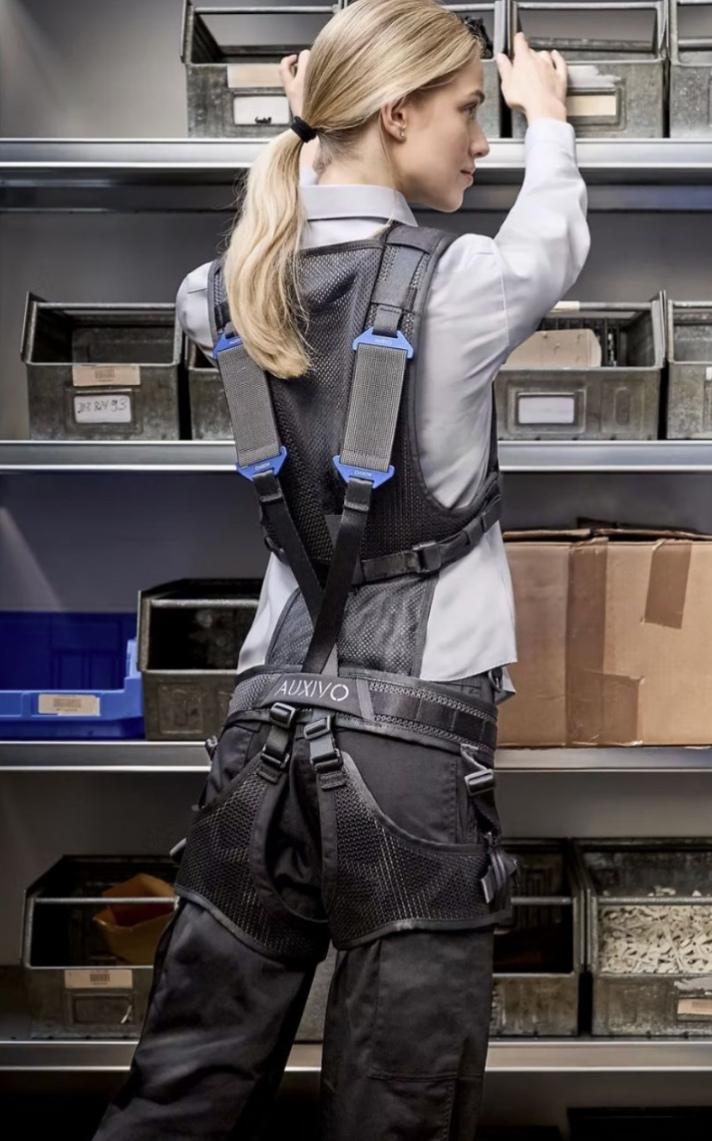 Auxivo LiftSuit®是一種輕型外骨骼腰背省力服,本身重量超輕只有 900 公克而已,它可以用於在人員由地面搬起物件的時候,或在人員以前傾姿勢長時間工作時,用來支撐使用者的背部和臀部肌肉,這樣的設計可以減輕身體骨骼與肌內的負荷、大幅減少肌肉疲勞和操作疲勞。