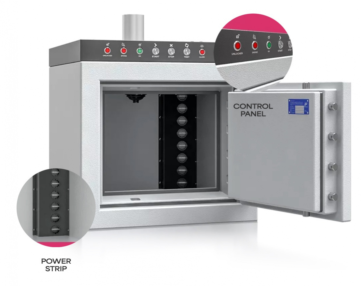 ✔️ 將整個櫃子實際暴露於火焰中30 / 60 / 90 分鐘耐火 (視廠家申請與通過的級別而定)