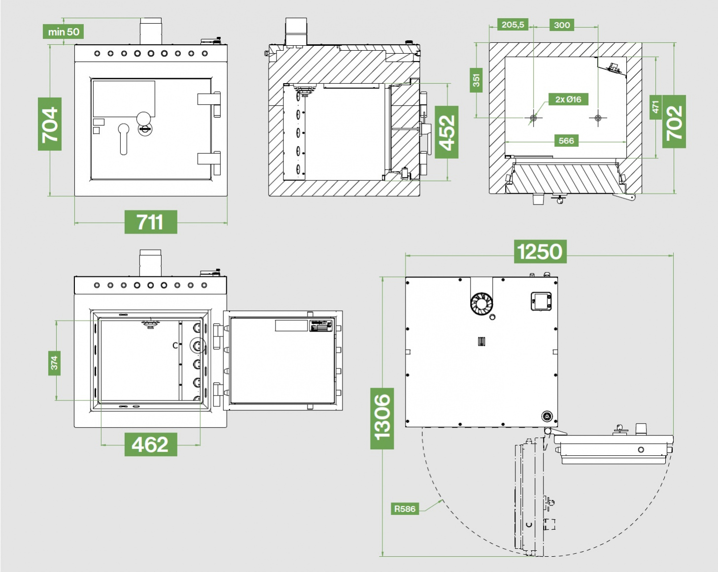 ➡️ 通風連接預留空間:最少 50 mm