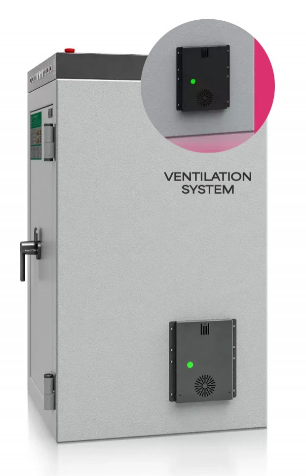 ✔️ 電池櫃配備 DN100 通風接口,可與建築物的通風系統整合。在緊急情況下,通風系統會自動關閉,以切斷氧氣供應並隔離潛在的燃燒源。