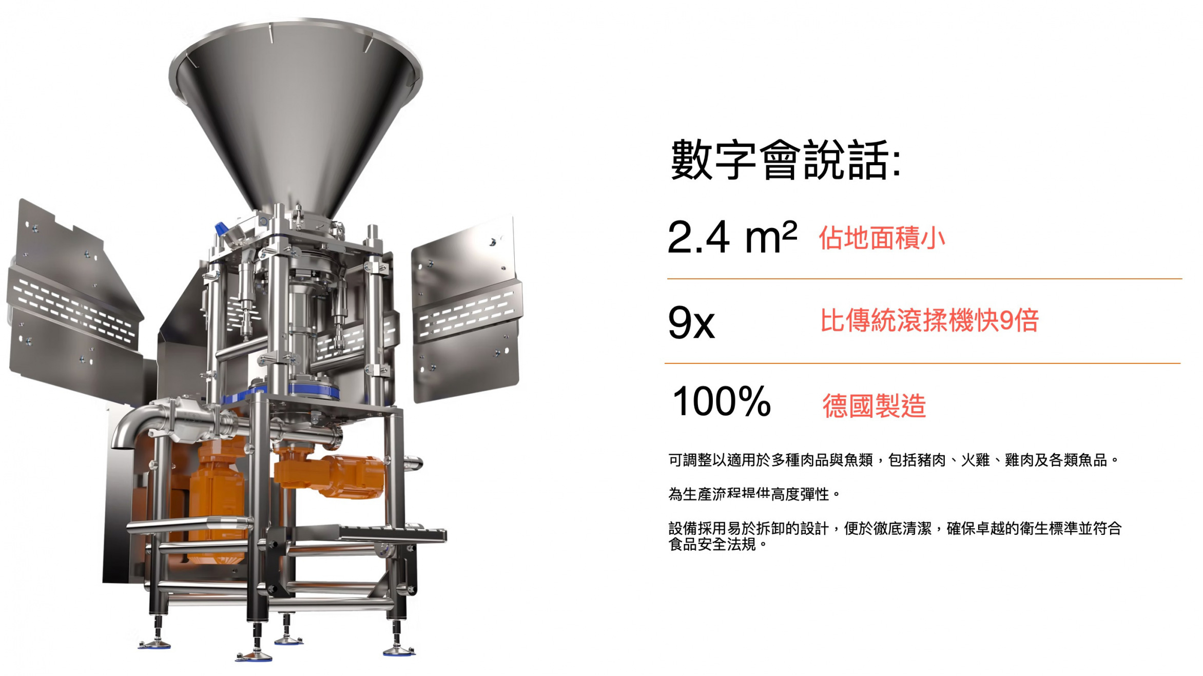 快速、高效、衛生、彈性,一台設備全面提升你的加工能力。