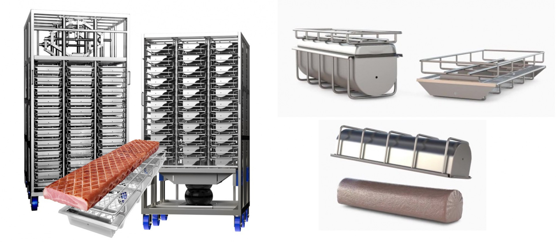 ➡️ Eberhardt 提供多種模具形狀與幾何造型 — 長方形、方形、圓形、特殊造型(例如火腿形、整塊肉形、條塊形、切片適用形等)。這使肉品加工廠可以根據市場需求、生產類型與最終包裝要求,自由選擇最適合的模具。