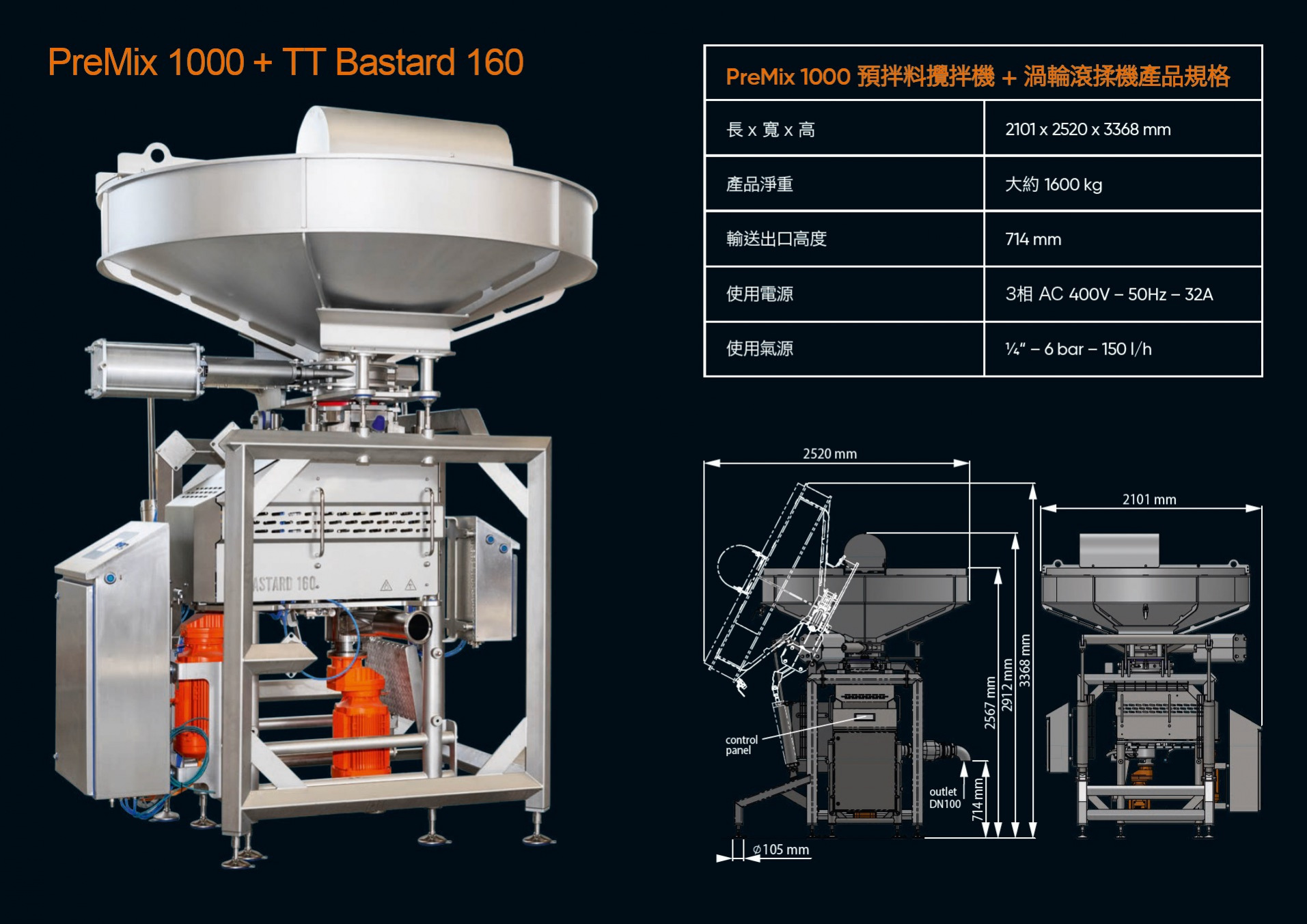 全系統採不鏽鋼製造,易清洗、易消毒,符合食品加工衛生標準,適合高規格食品工廠。