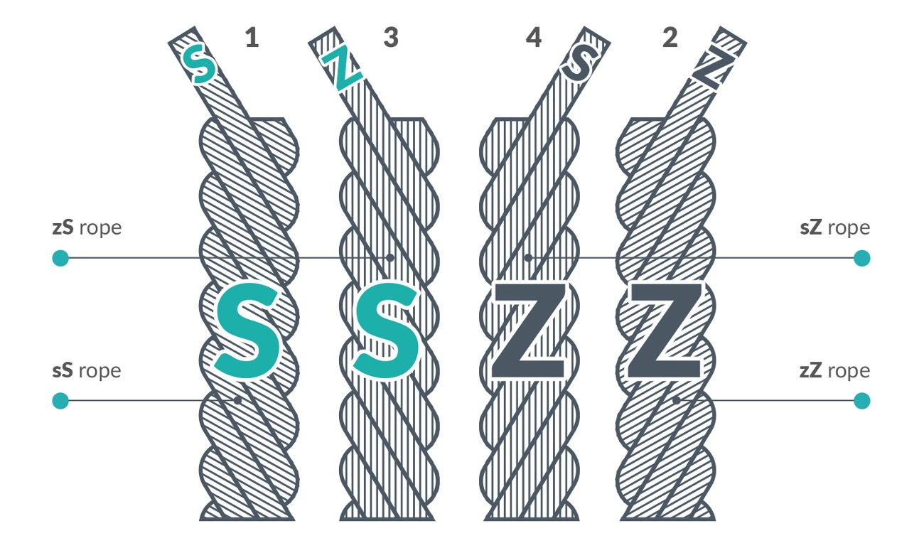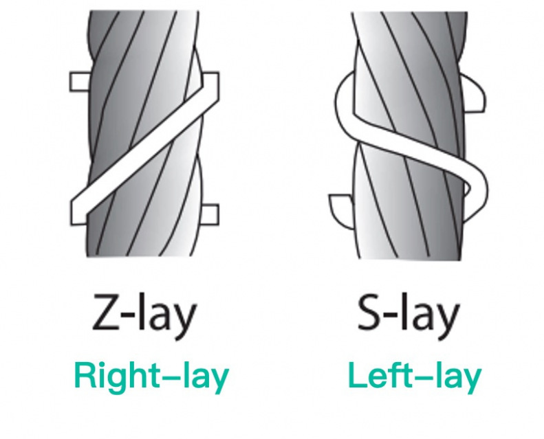 鋼索的結構,依用途分會有不同的層數與捲繞方向 :