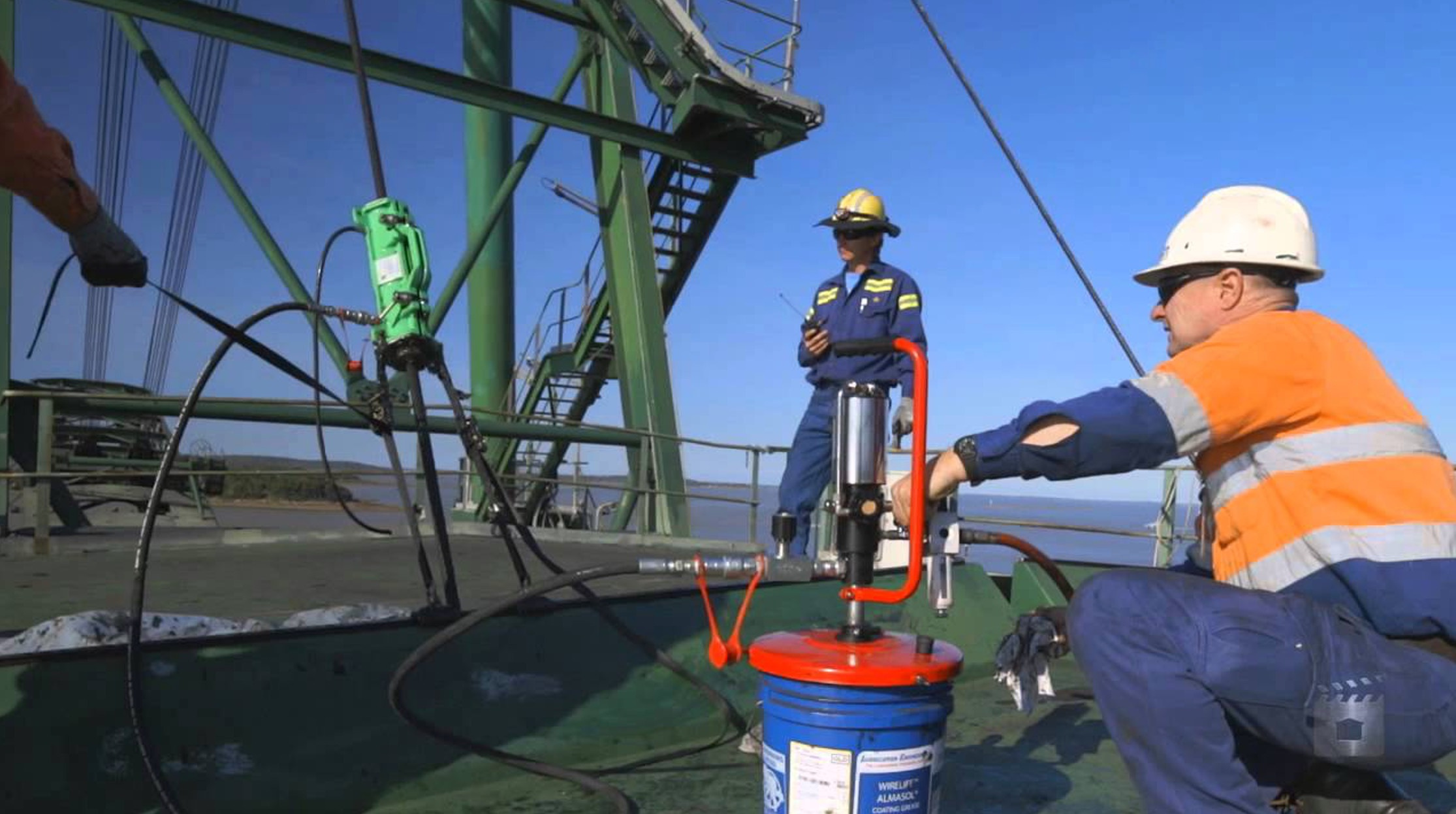 Viper鋼索潤滑系統透過高壓泵將潤滑油脂打到鋼索的表面並滲入內芯,可提升鋼索壽命300%,節省人力90%,高速潤滑鋼索2000公尺/小時,簡易安裝和操作可以有效減少工安悲劇和降低成本。